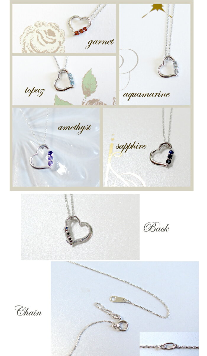 【ギフトBOX付き】オープンハート ガ−ネットホワイトゴールド ネックレス バリエーション ガーネット アメジスト アクアマリン ブルートパーズ サファイア