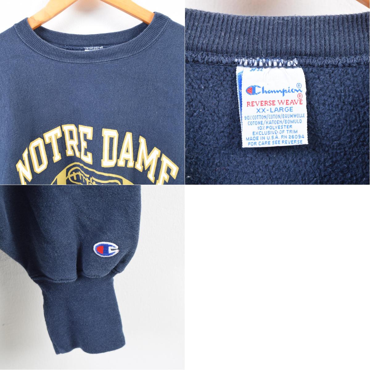 90年代 チャンピオン Champion リバースウィーブ 刺繍タグ NOTREDAME FOOTBALL 三連プリント カレッジスウェットシャツ トレーナー USA製 メンズXXL /wbe2025 【中古】 【190520】【ws2001】【CS2001】