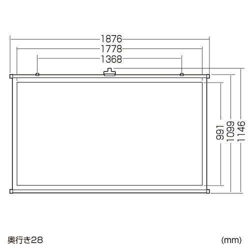 <仕様>■サイズ:W1876×D28×H1146mm■スクリーン表示サイズ:1778×991mm■アスペクト比:16:9■対角線サイズ:80型相当■重量:2.6kg■材質:マット系■吊り下げ金具:大×1個(中央)、小×2個(左・右)※吊り下げ金具(大)を使用して三脚に吊り下げます。
